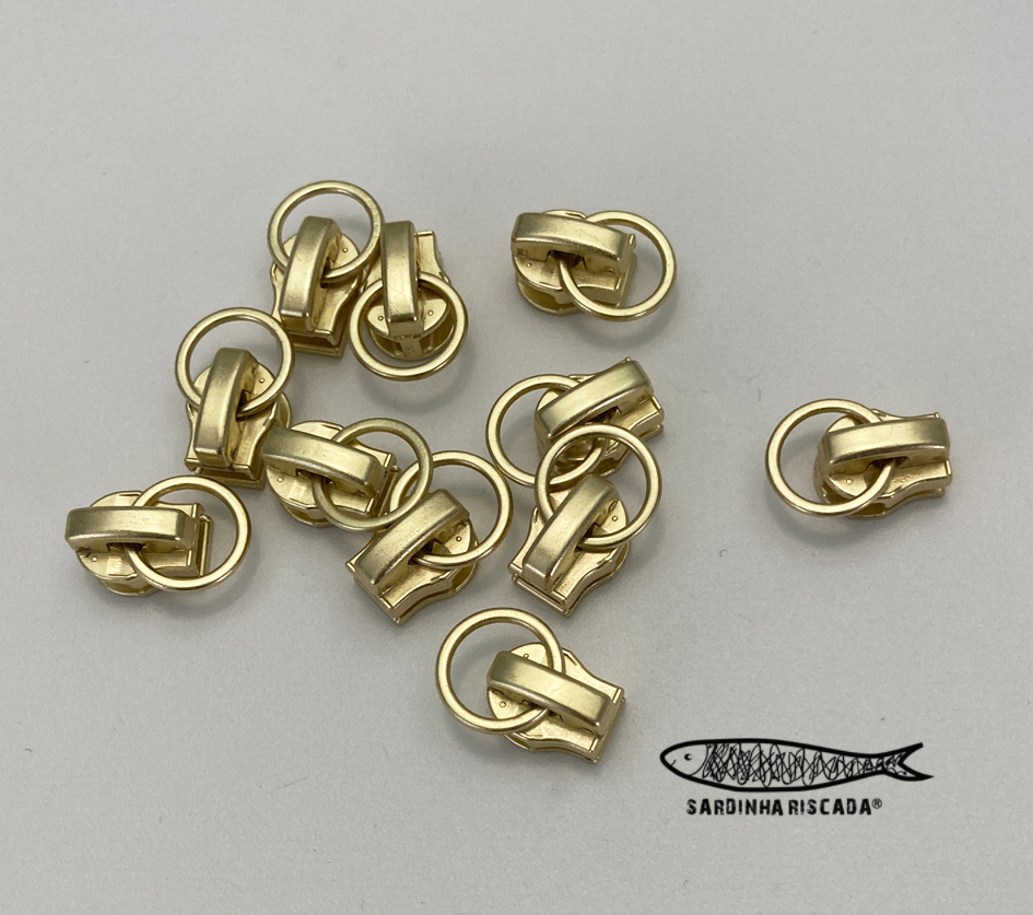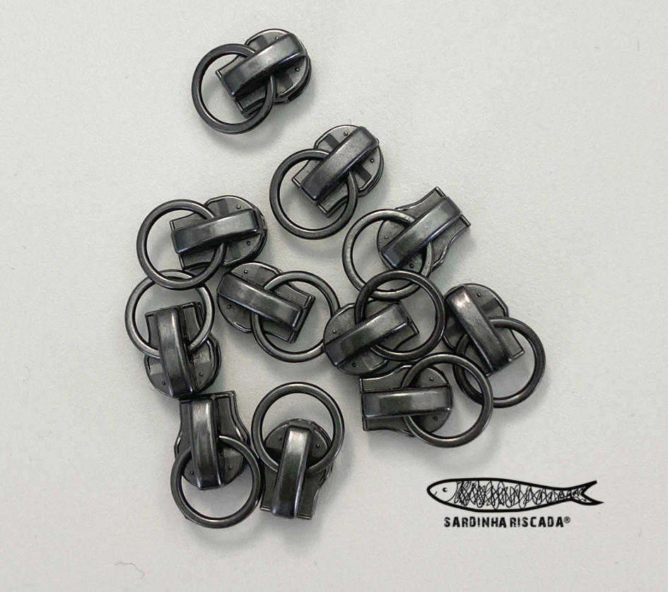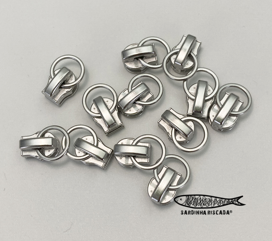 Cursores para fecho Zipper malha 5 metalizado, vendido à unidade.
