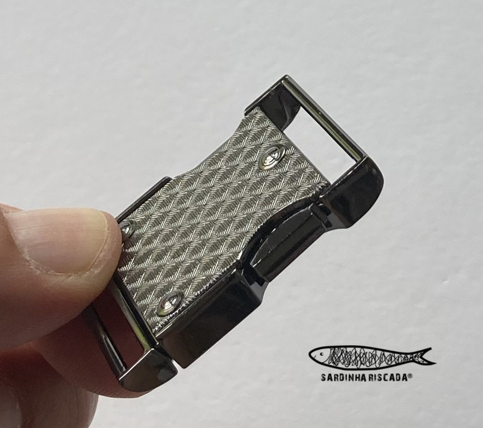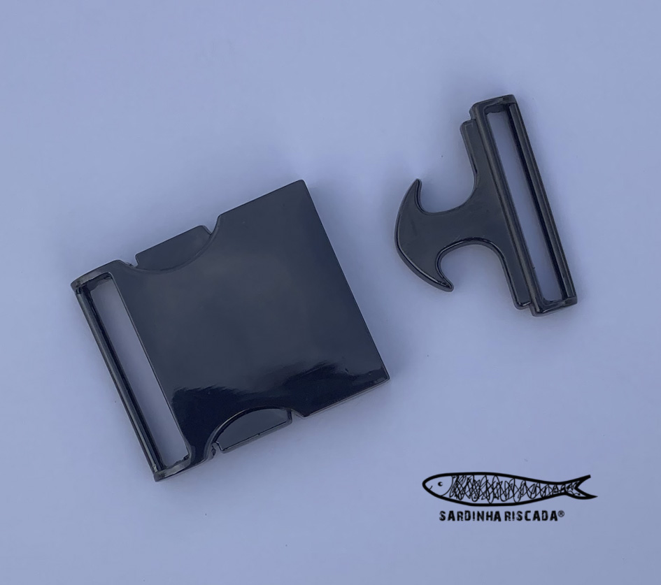 Fecho metálico indicado para precinta ou fita de de 25mm.