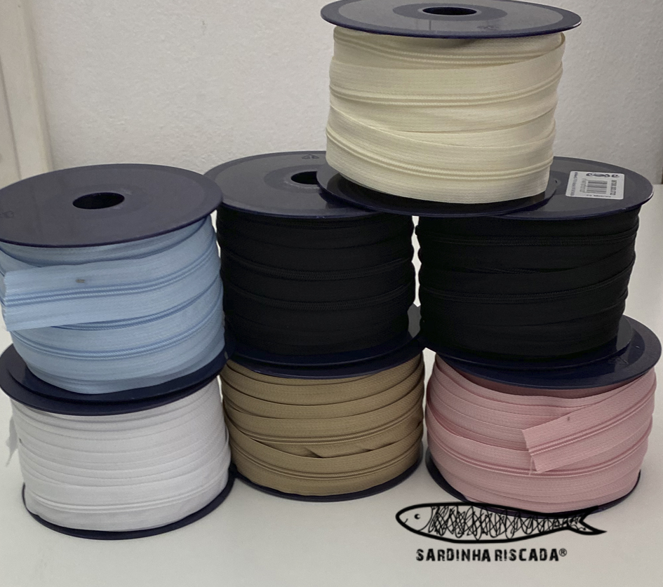 Fecho zipper malha 3 vendido em bobine de 25 metros