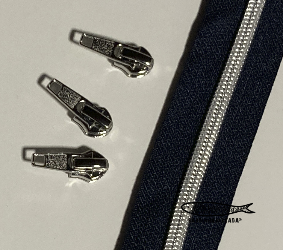 Fecho Zipper malha 6 em nylon com efeito metalizado prata