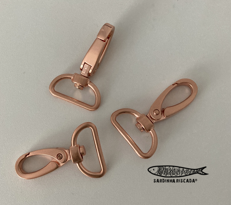 Mosquetão cor Rosa Gold para utilização em alças ou fitas com 25mm de largura
