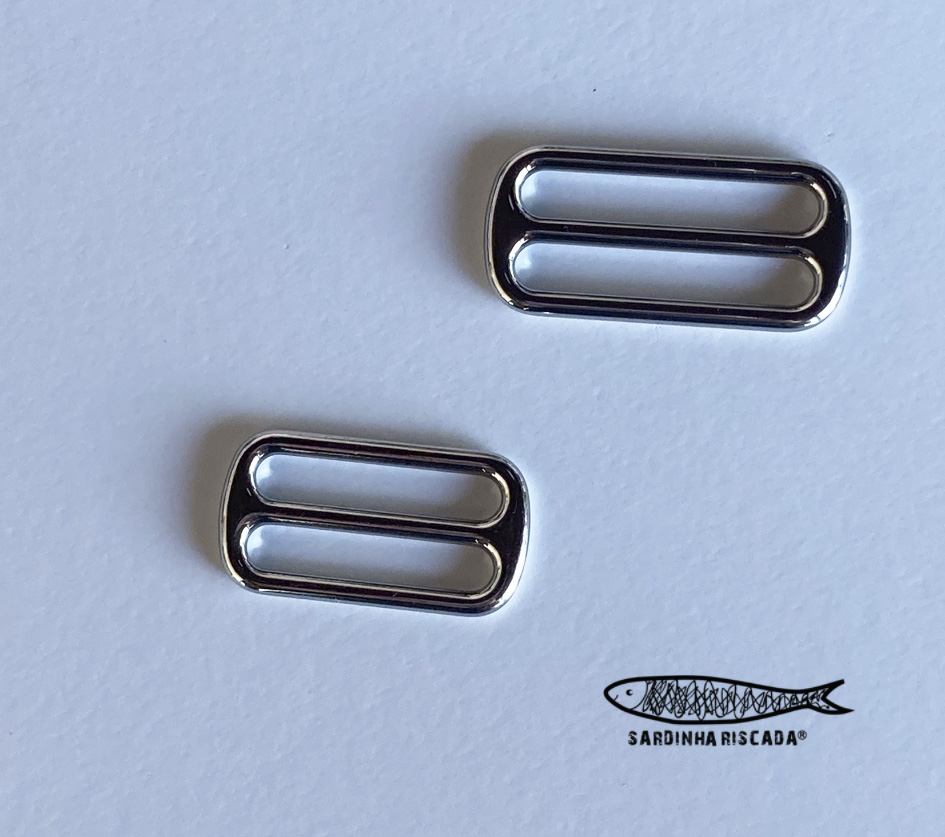 Passador na cor prata para utilização em alças ou fitas com 25mm e 30mm de largura