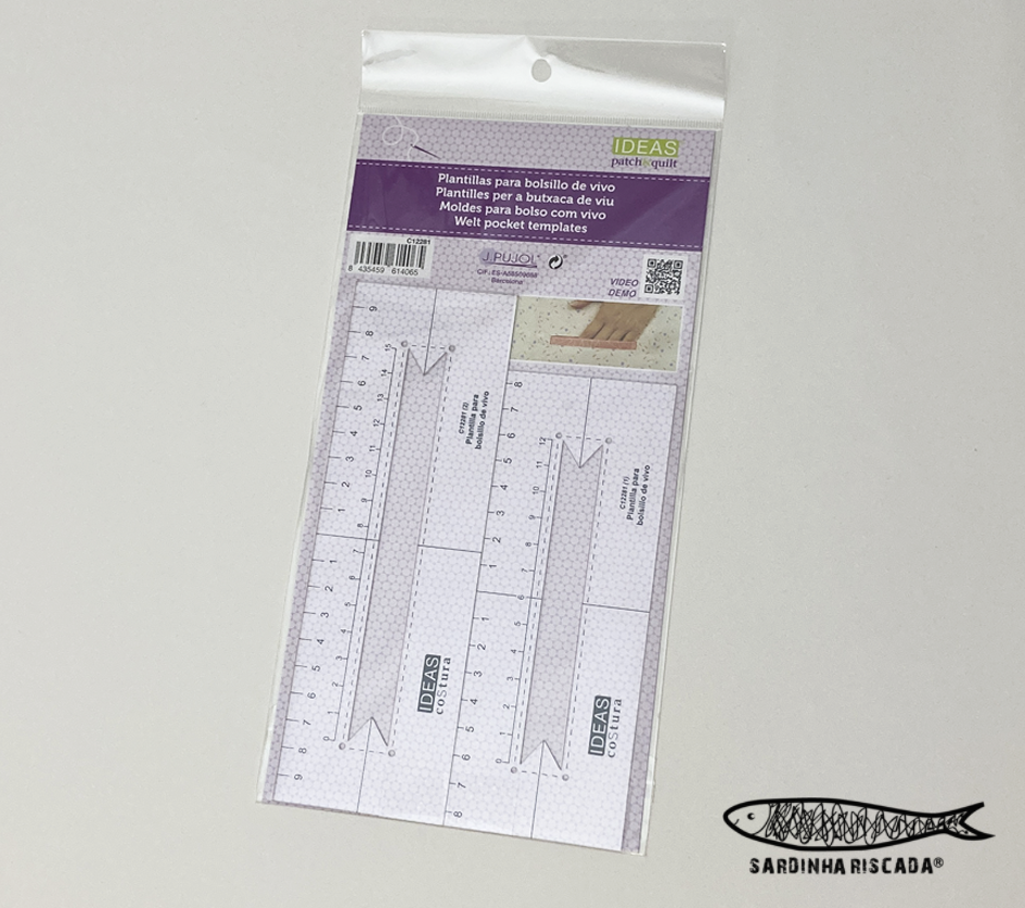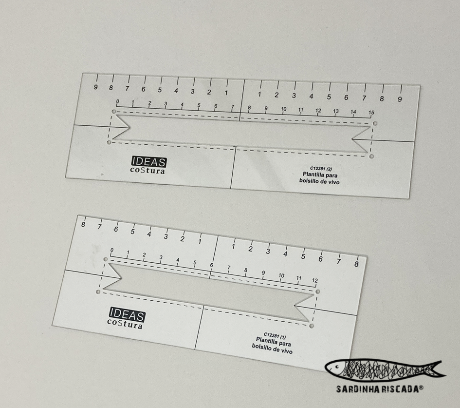Régua molde para bolsos embutidos com fecho ou com vivo.
